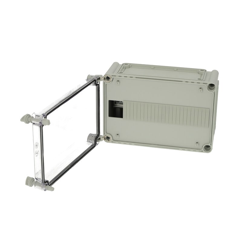Sisältää : Laippa-aukollinen alaosa, ruuvit asennuslevylle, kansi PUR-tiivisteellä ja polyamidi kansiruuveilla. Sisältää DIN-kiskojärjestelmän.