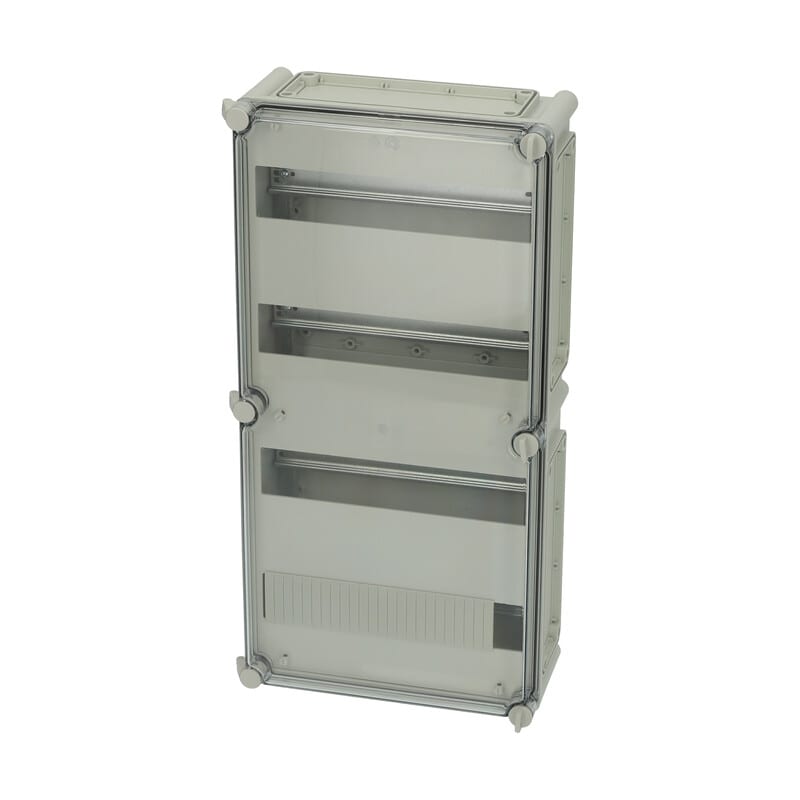 Sisältää : Laippa-aukollinen alaosa, ruuvit asennuslevylle, kansi PUR-tiivisteellä ja polyamidi kansiruuveilla. Sisältää DIN-kiskojärjestelmän. IP66/67; IK08