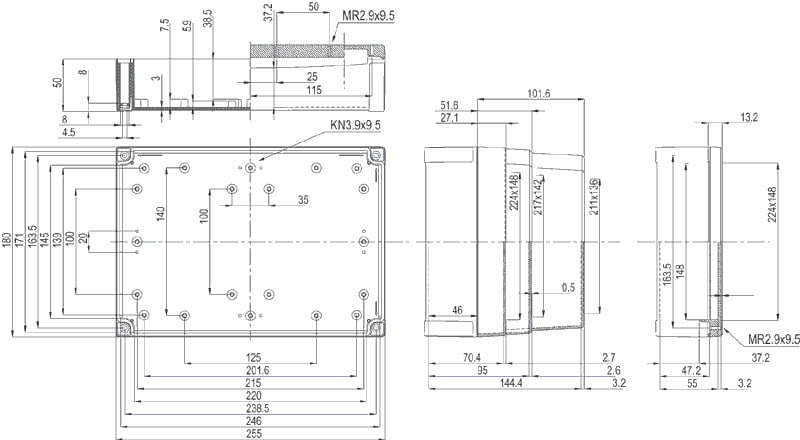 Fibox PC (polycarbonate) on sarja MNX-asennuskoteloita, PCM ja ABS koteloiden lisäksi.