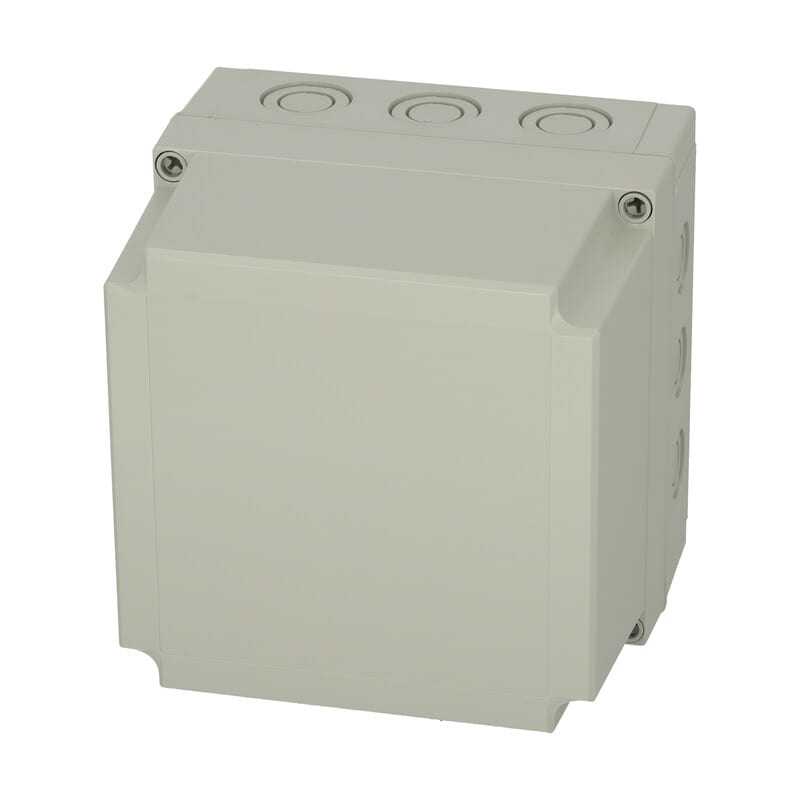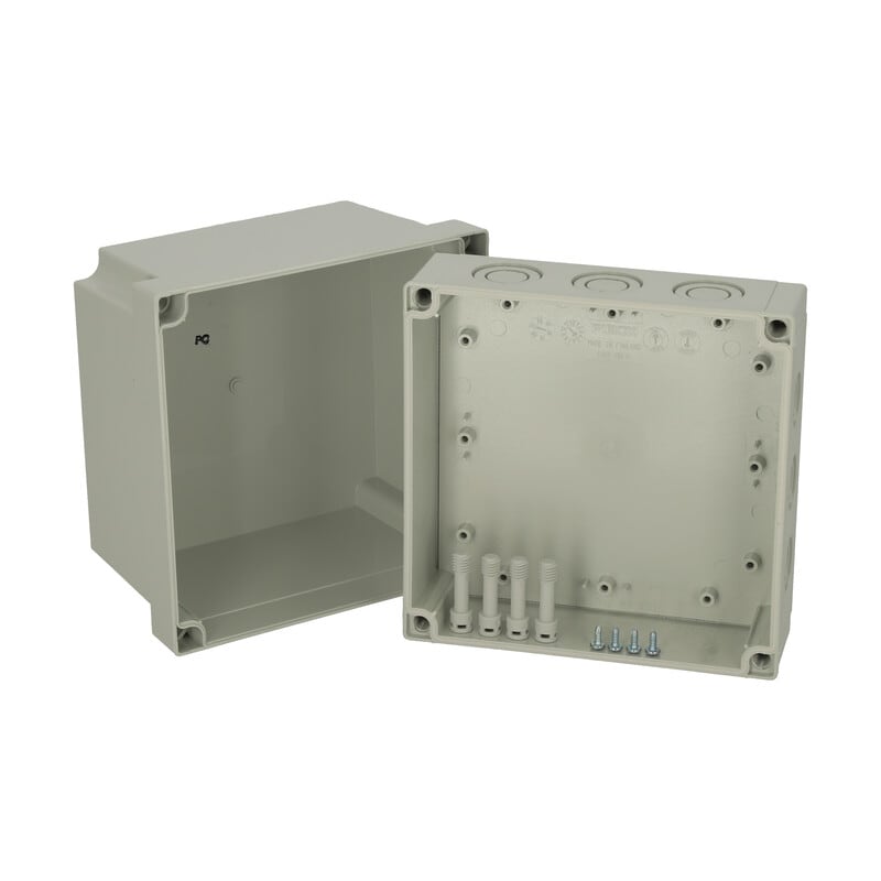 MNX PCM polykarbonaattikotelo, 180x180x150, metriset läpilyöntiaihiot, harmaa, alaosa TPE-tiivisteellä, 4 kpl ruuvit asennuslevylle/DIN-kiskolle, 4 kpl polyamidi kansiruuvia, IP66/67, IK08