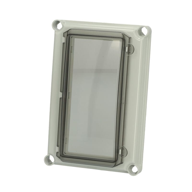 Kansi, 280x190x55, Saranoitu tarkastusikkuna, Polykarbonaatti, Harmaa, IP65, IK10 FIBOX EK polykarbonaattikannet laippa-aukoilla eri tarpeisiin