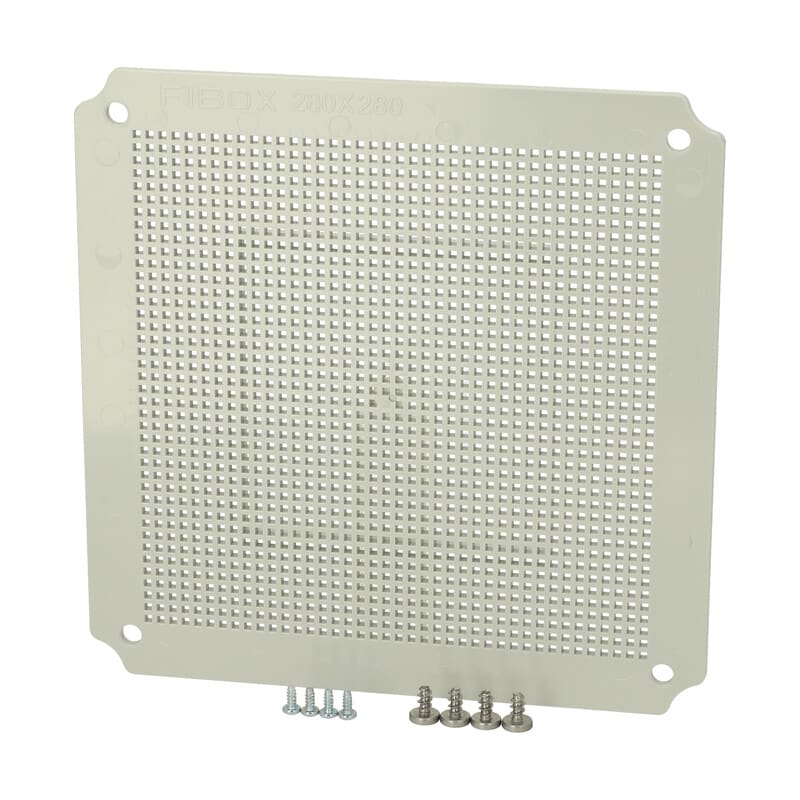 Muovinen perforoitu asennuslevy, EKO ja SOLID PC/ABS 2828 koteloille, Sisältää kiinnitysruuvit ja asennusruuvit Tulevaisuuden asennuslevy - MPI