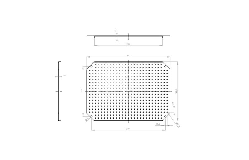 MPMP, Mounting Plate Multi Perforated, Asennuslevy, moniperforoitu, 350x250x1,5, kaapin koolle 400x300x150/210, Galvanoitu teräs, perforoinnin koko ø3.6 mm, ei sisällä asennusruuveja