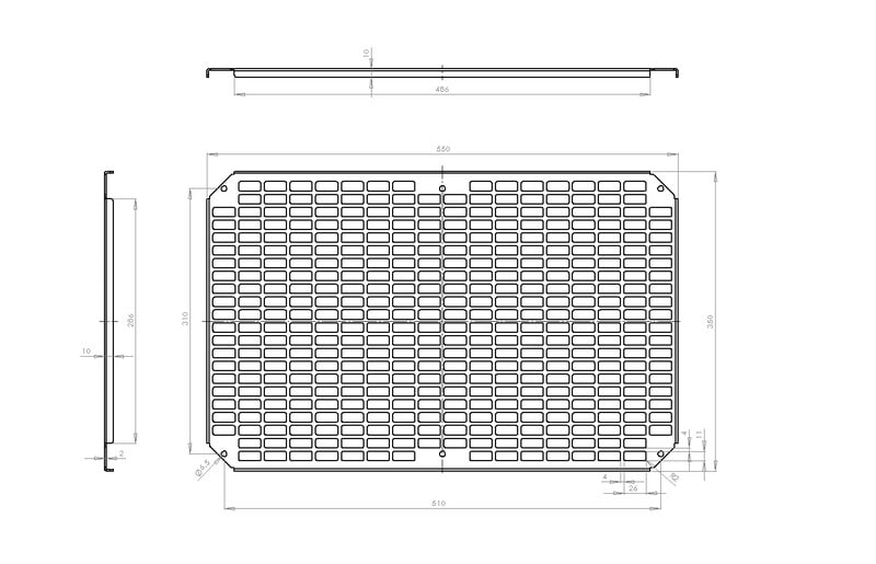 MPP, Mounting Plate Perforated, Asennuslevy, perforoitu, 350x550x2, kaapin koolle 400x600x210, Galvanoitu teräs, perforoinnin koko 26x11 mm, ei sisällä asennusruuveja