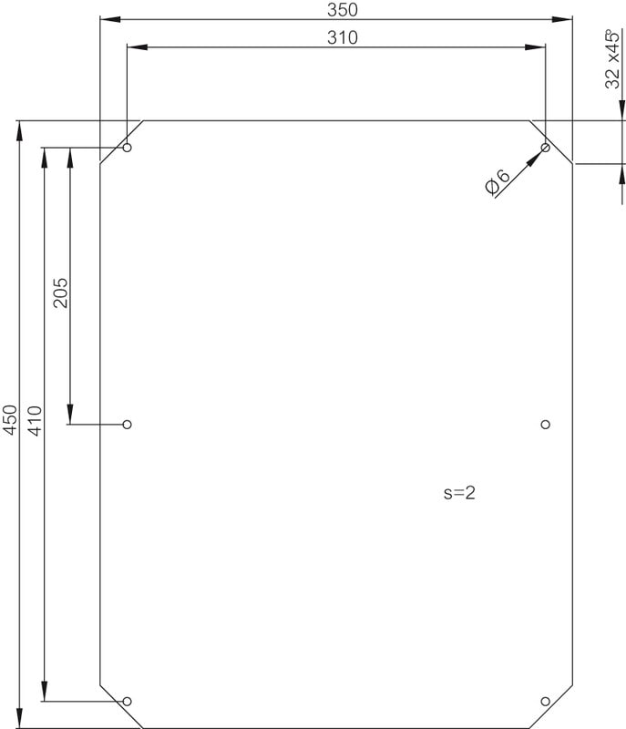 MPS, Mounting Plate Set, Asennuslevy, 450x350x2, kaapin koolle 500x400x210, Galvanoitu teräs, ei sisällä asennusruuveja