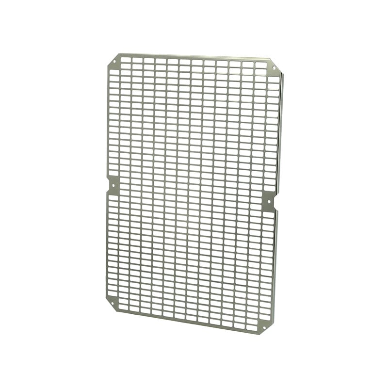 Asennuslevy, perforoitu, 630x430x2, kaapin koolle 700x500x300, Galvanoitu teräs, perforoinnin koko 26x11 mm, ei sisällä asennusruuveja FIBOX ARCA polykarbonaattikaapit