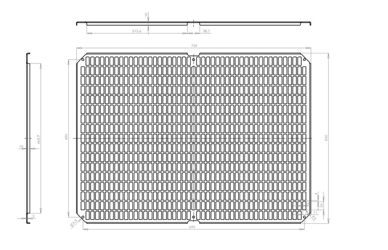 MPP, Mounting Plate Perforated, Asennuslevy, perforoitu, 730x530x2, kaapin koolle 800x600x300, Galvanoitu teräs, perforoinnin koko 26x11 mm, ei sisällä asennusruuveja