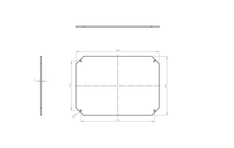 MPX, Mounting Plate Resin bonded paper board, Asennuslevy, eristetty, 350x250x5, ARCA kaapin koolle 400x300x150/210, Hartsisidottu kartonki, sisältää 4kpl asennusruuvia ja aluslaattaa