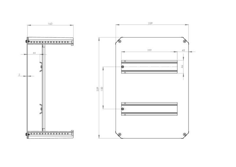 DRS, Din Rail frame Set, DIN-kiskokehyssarja, 2 riviä x 11 modulia, ARCA kaappikoolle 400x300x210