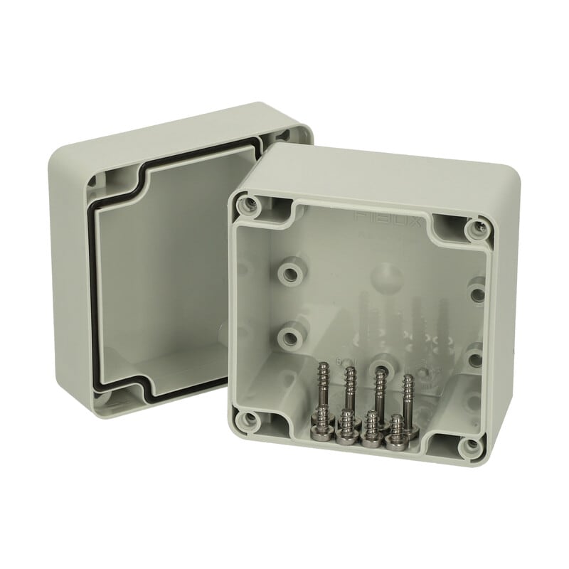 Sisältää : Kotelon alaosan, asennuslevyn/DIN-kiskon kiinnitysruuvit, kansi PUR-tiivisteellä ja ruostumattomasta teräksestä kansiruuvit. IP66, IP67, IK07, IK08