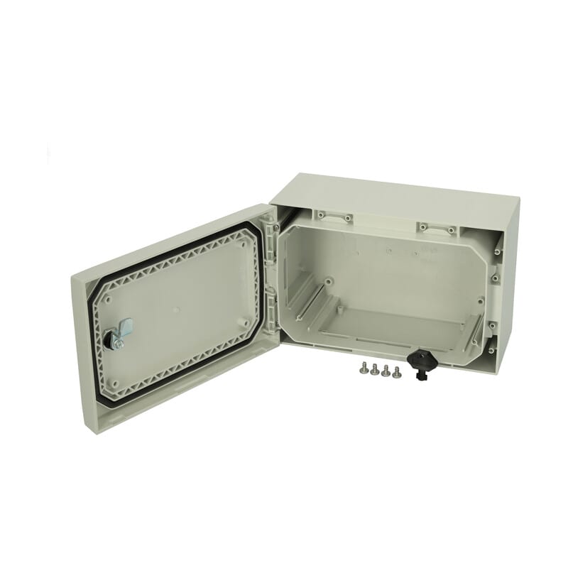 Sisältää : Kaapin alaosa, ovi PUR tiivisteellä, ruuvit asennuslevylle. 3mm kaksoislehtilukko(t) avaimella. S versiot kääntökahvalla. Oviohjain sisältyy. Ei sisällä asennuslevyä. IP66; IK10