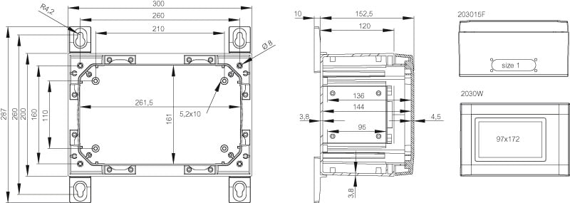 Sisältää : Kaapin alaosa, ovi PUR tiivisteellä ja ikkunalla, Ruuvit asennuslevylle. Ei sisällä asennuslevyä. 3mm kaksoislehtilukko(t) avaimella. S versiot kääntökahvalla. Oviohjain sisältyy. IP65; IK08