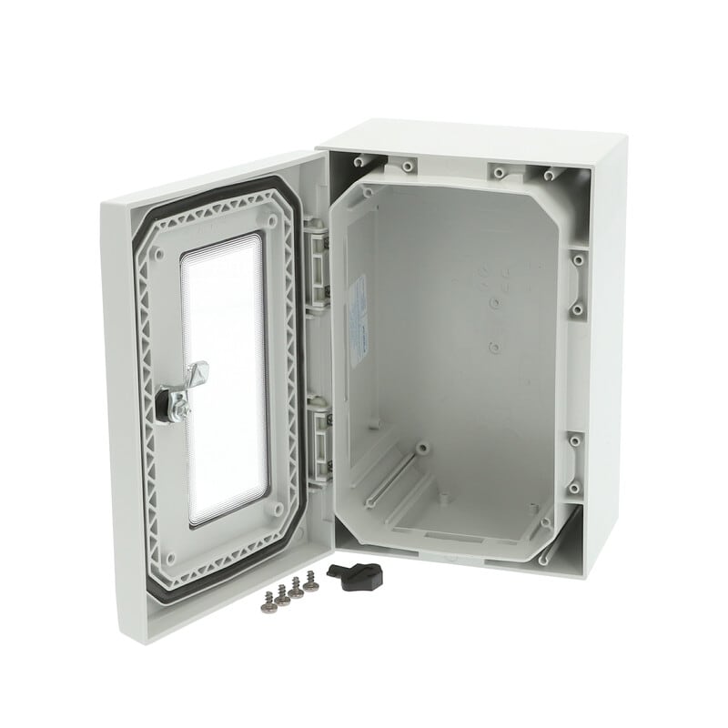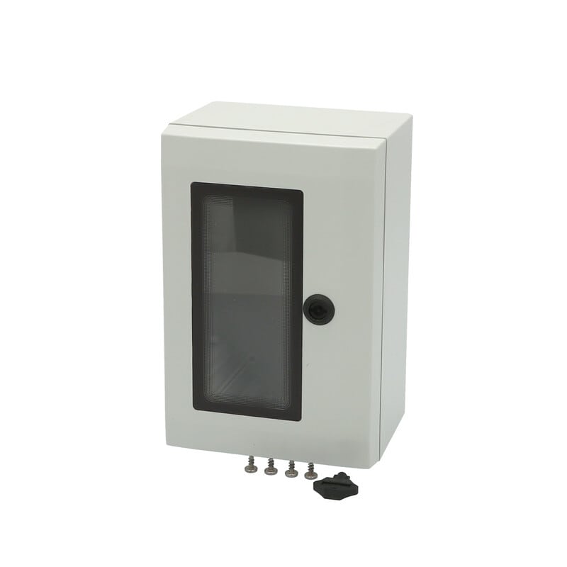 Sisältää : Kaapin alaosa, ovi PUR tiivisteellä ja ikkunalla, Ruuvit asennuslevylle. Ei sisällä asennuslevyä. 3mm kaksoislehtilukko(t) avaimella. S versiot kääntökahvalla. Oviohjain sisältyy. IP65; IK08