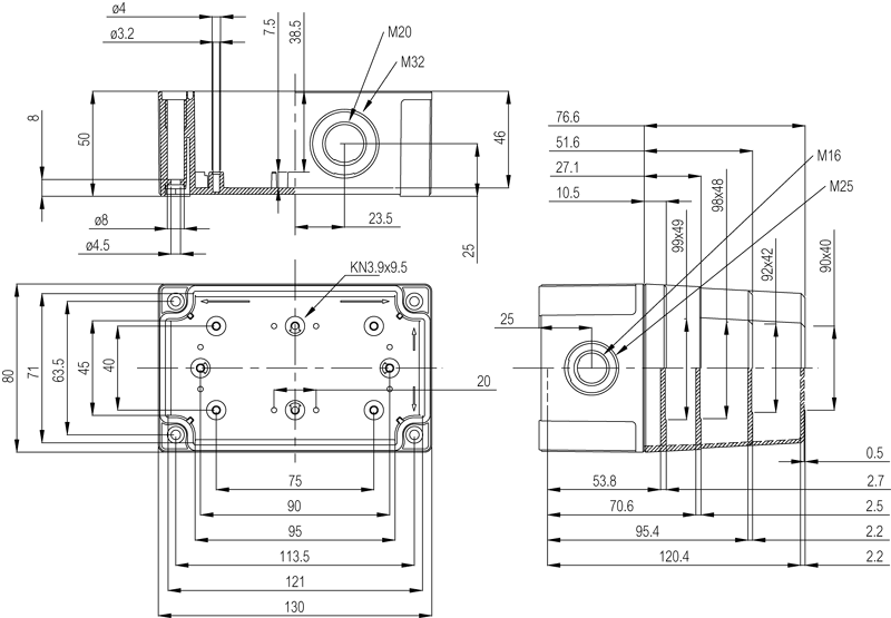 Fibox PCM (polycarbonate metric) on sarja MNX-asennuskoteloita, joissa on metriset läpivientiaihiot. Kehitetty erityisesti metristen läpivientien ja kumitiivisteiden standardien ja normien mukaisesti.