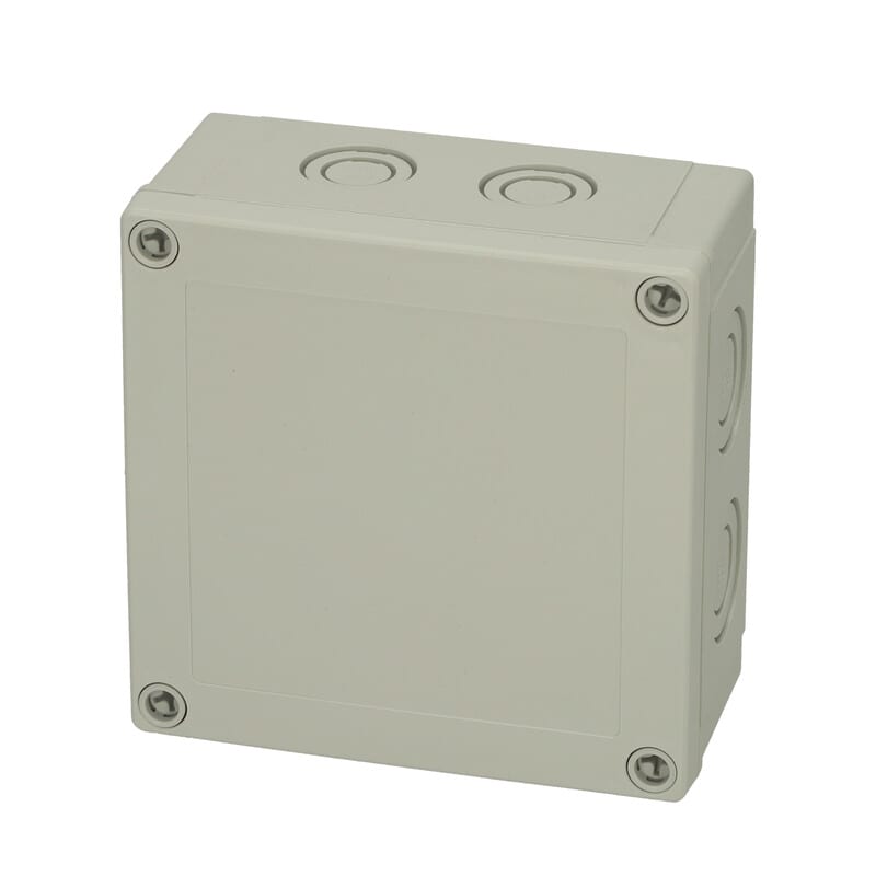 MNX PCM polykarbonaattikotelo, 130x130x60, metriset läpilyöntiaihiot, harmaa, alaosa TPE-tiivisteellä, 4 kpl ruuvit asennuslevylle/DIN-kiskolle, 4 kpl polyamidi kansiruuvia, IP66/67, IK08