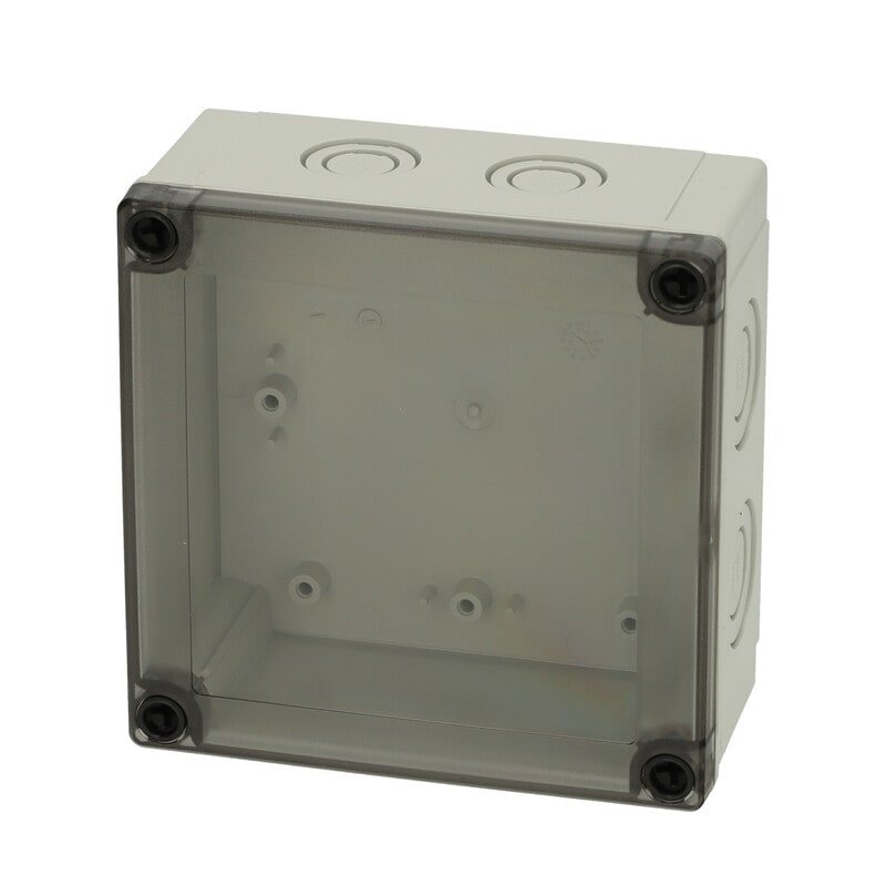 MNX PCM polykarbonaattikotelo, 130x130x60, metriset läpilyöntiaihiot, savunharmaa läpinäkyvä kansi, alaosa TPE-tiivisteellä, 4 kpl ruuvit asennuslevylle/DIN-kiskolle, 4 kpl polyamidi kansiruuvia, IP66/67, IK08 FIBOX MNX PCM polykarbonaattiasennuskotelot metrisillä läpivientiaihioilla