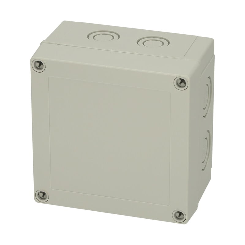MNX PCM polykarbonaattikotelo, 130x130x75, metriset läpilyöntiaihiot, harmaa, alaosa TPE-tiivisteellä, 4 kpl ruuvit asennuslevylle/DIN-kiskolle, 4 kpl polyamidi kansiruuvia, IP66/67, IK08