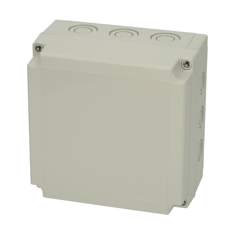 MNX PCM polykarbonaattikotelo, 180x180x100, metriset läpilyöntiaihiot, harmaa, alaosa TPE-tiivisteellä, 4 kpl ruuvit asennuslevylle/DIN-kiskolle, 4 kpl polyamidi kansiruuvia, IP66/67, IK08