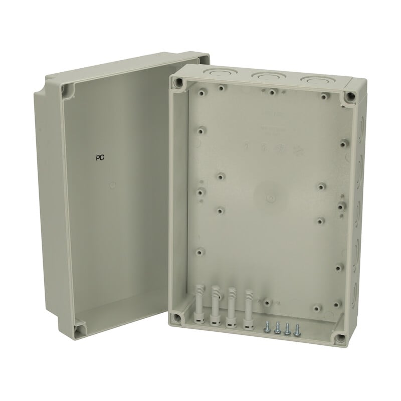 MNX PCM polykarbonaattikotelo, 255x180x100, metriset läpilyöntiaihiot, harmaa, alaosa TPE-tiivisteellä, 4 kpl ruuvit asennuslevylle/DIN-kiskolle, 4 kpl polyamidi kansiruuvia, IP66/67, IK08