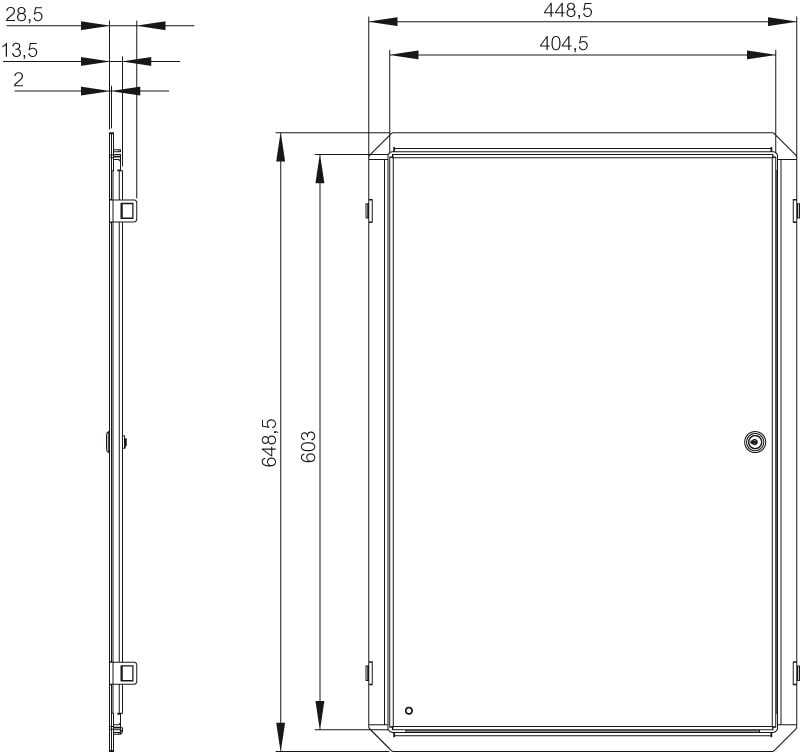 IDS, Inner Door Set, Sisäovisarja, 685x485x35, kaapin koolle 700x500x300, Galvanoitu teräs ja alumiini, lukittava ja sisältää avaimen, RAL 7035