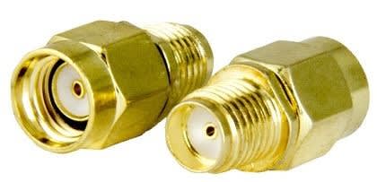Adapterin liittimet: SMA-naaras ja RP-SMA uros (RP = Reverse Polarity).