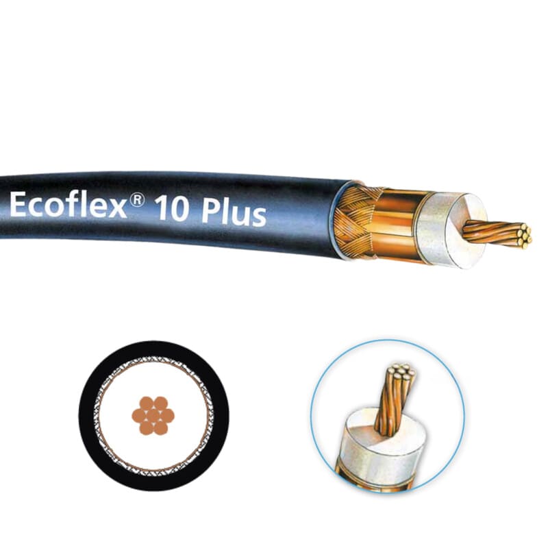 Ecoflex 10 Plus- koaksiaalikaapelissa keskijohdin koostuu alumiiniytimestä ja kuparipinnoitteesta. Tämä keventää painoa ja parantaa ominaisuuksia.