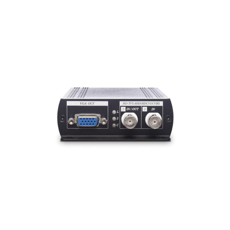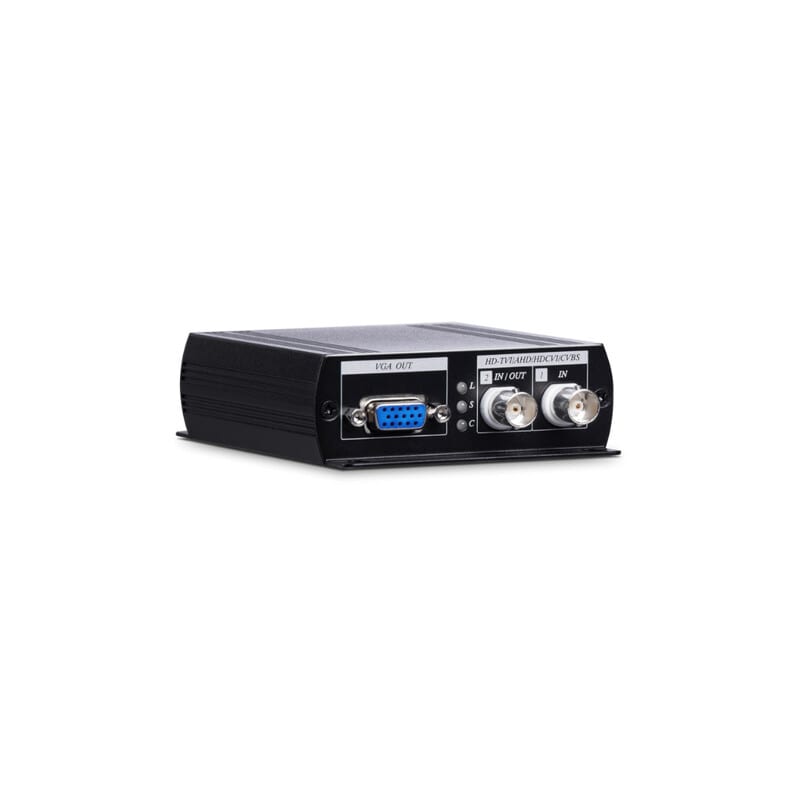 - Muuntaa HD-TVI, AHD, HDCVI, NTSC/PAL ja 960H HDMI-, VGA- ja komposiittivideoiksi.