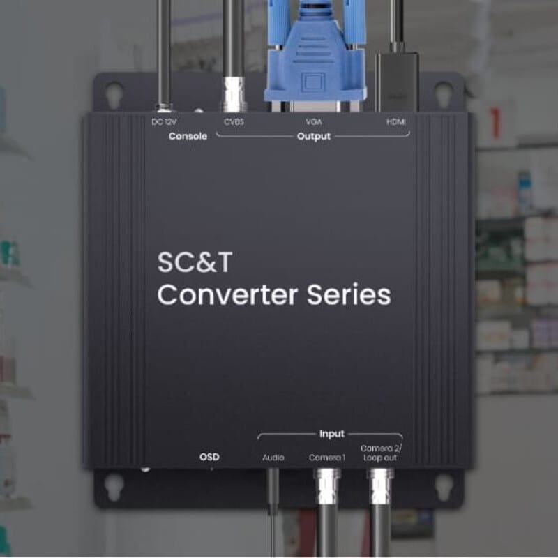 Signaalimuunnin, joka muuntaa analogisen HD-signaalin (AHD/TVI/CVI) HDMI- signaaliksi.