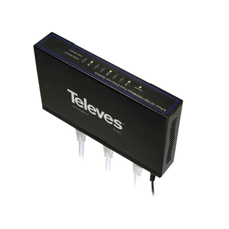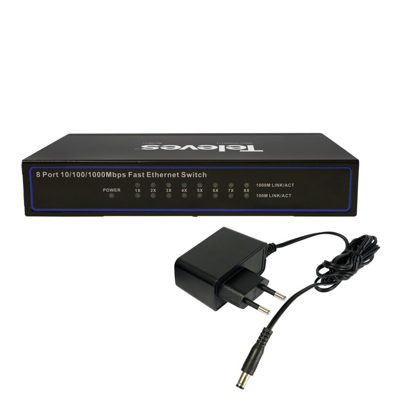 Televesin ei-hallittava 8-porttinen Gigabitin Layer 2 -kytkin. Tämän Plug&Play -laitteen käyttö on helppoa, eikä sitä tarvitse ohjelmoida. Se sopii monenlaisiin sovelluksiin ja on suunniteltu erityisesti pieniin verkkoihin, joissa ei vaadita useita portteja.