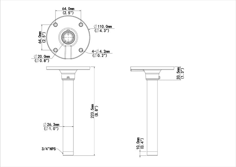 Kattokiinnike 200mm putkella Dome-kameralle sisäasennukseen Ominaisuudet