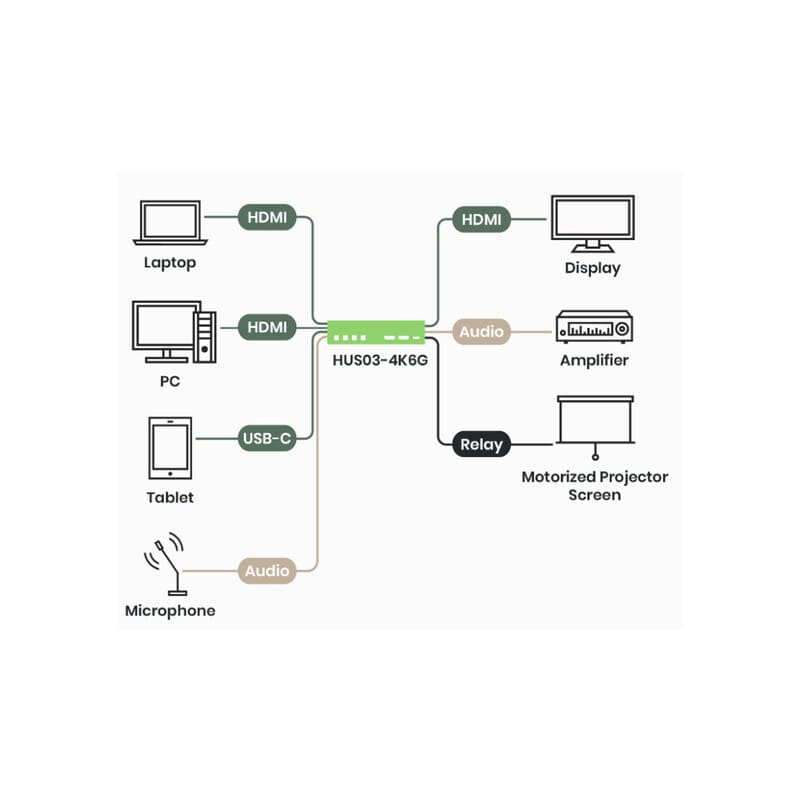 USB-C -tulo on yhteensopiva kaikkien DP Alt Mode -laitteiden kanssa, eli se toimii esimerkiksi MacBookin, iPadin ja useiden matkapuhelinten kanssa. Lisäksi se tukee myös 60W latausta, joten käyttäjä voi ladata laitteitaan esityksen aikana.