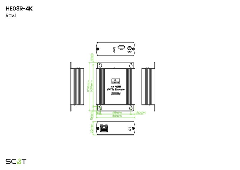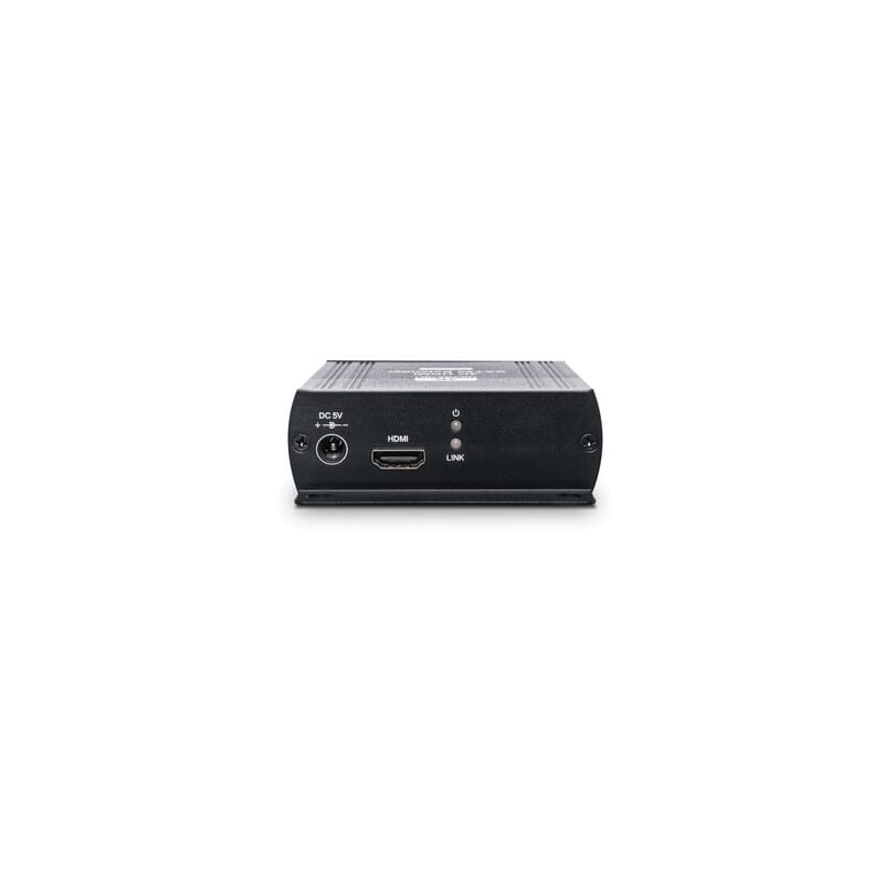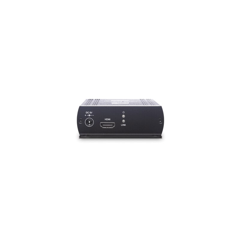 HDMI-laajennin 4K max. 140m Cat5e/6 -kaapelille, sisältää vastaanottimenja lähettimen HE03-4K on 4K HDMI-laajenninpari, jonka lähetin käyttää AV over IP -tekniikkaa muuttamaan HDMI-lähteen (max 4K@30Hz 4:4:4) signaalin kulkemaan +120m CAT5e- tai CAT6-kaapelointia pitkin vastaanottimelle, jossa signaali muunnetaan takaisin. Vastaanotin kytketään HDMI-kaapelilla näyttöön.