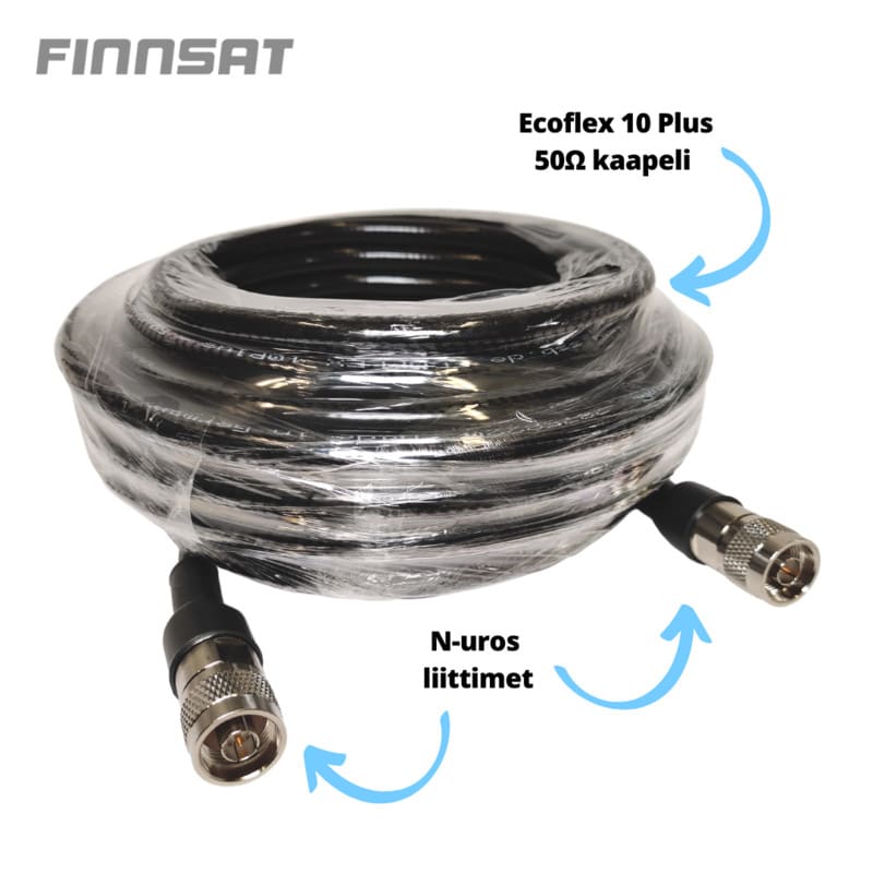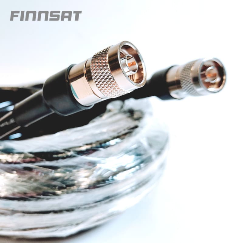 Finnsat valmiskaapeli 20 metriä N-uros liittimillä. Kaapelina 50 ohmin laadukas ja pienivaimennuksinen Ecoflex10 Plus.