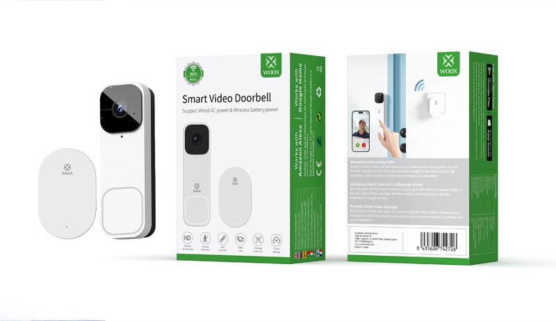 WiFi video-ovikello+soittokello, 2x2600mAh akulla, kaksisuuntainen ääni,valkoinen