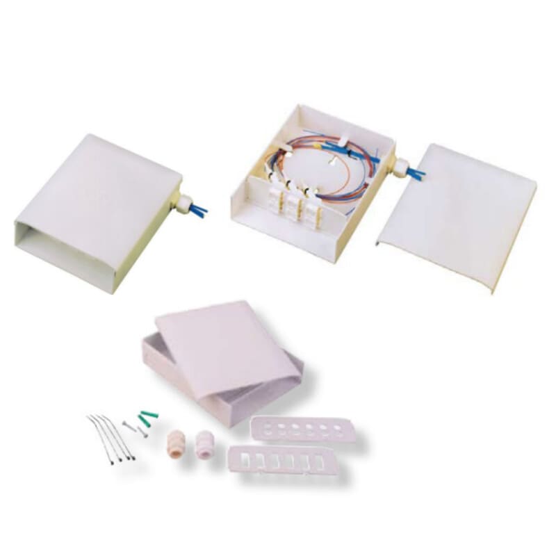 Corning 2552-SA kuitukotelo sopii 12 x kuidun päättämiseen tai 6 x RJ45 liittimen. Pieni kokoista muovikoteloa voidaan käyttää myös huoneiston päätekotelona.