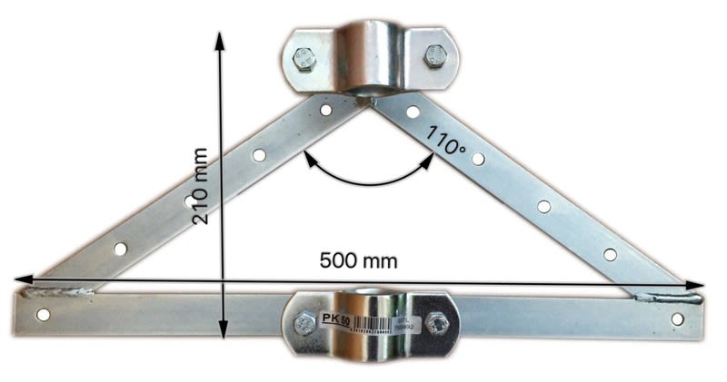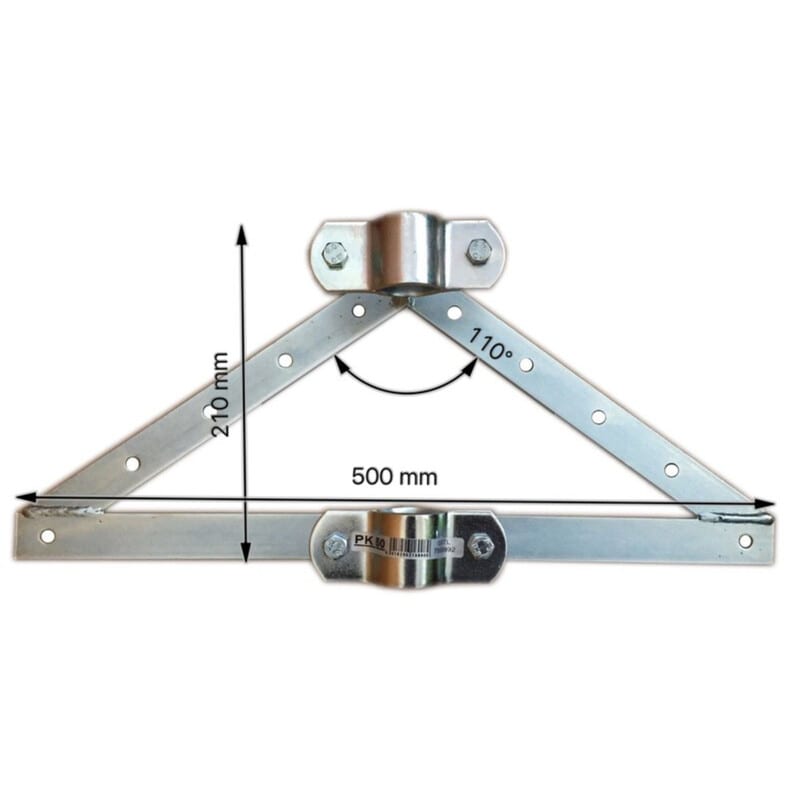 500x210mm,sähkösinkitty,avattava PK50 päätykolmio 500mm x 210mm pitää antennimaston varmasti paikallaan. Tämän mastokiinnikkeen ansiosta mastoa ei tarvitse asentaa katon läpi.