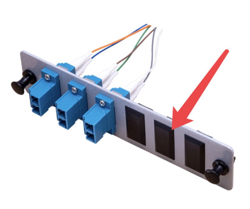 Valokuitupaneelin pölysuoja käyttämättömien aukkojen suojaksi.