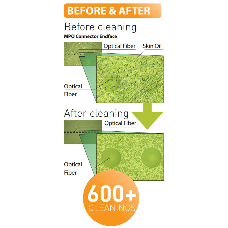 MPO/MTP puhdistuskynällä onnistuvat sekä naaras ja uros liittimien sekä myös 8° hionnan puhdistaminen.