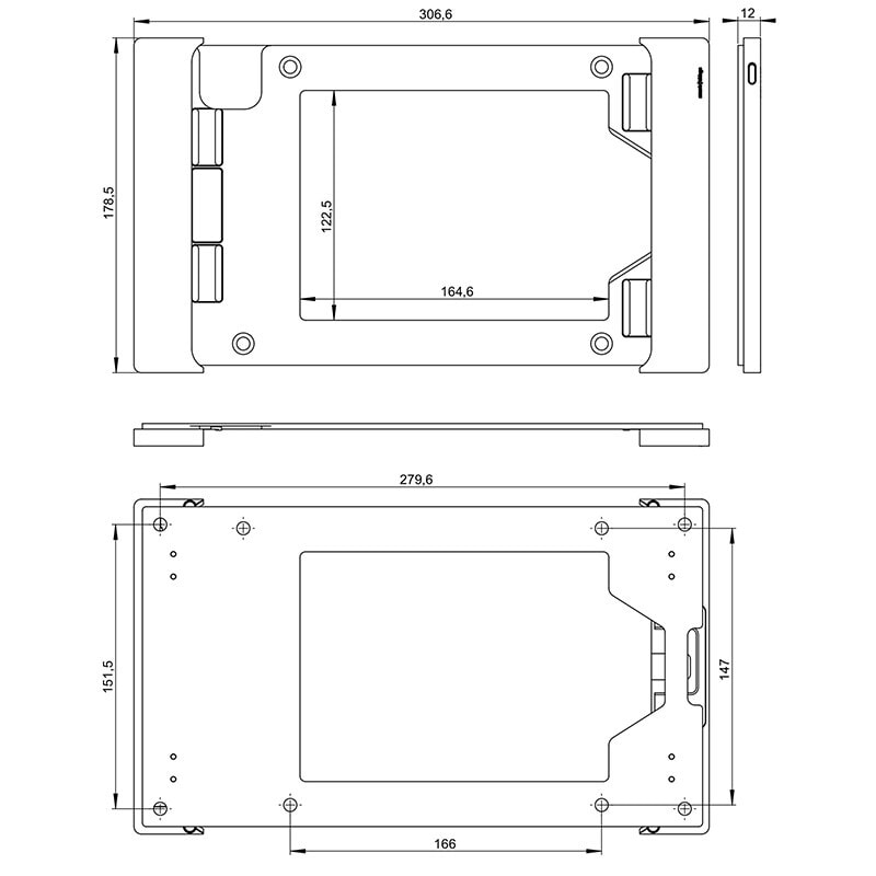 Lukittava seinäteline iPad Pro 11″, iPad Air 4+5, iPad Air 6 11″ (M2) (USB-C), hopea