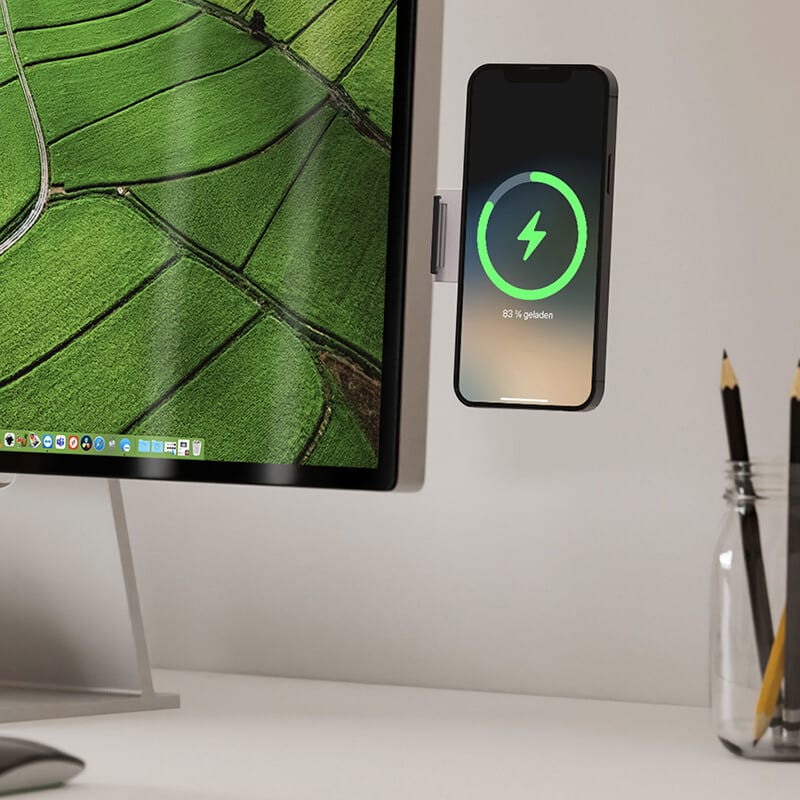 PhoneBase, näyttöön kiinnitettävä MagSafe-laturi langatonta latausta tukeville puhelimille