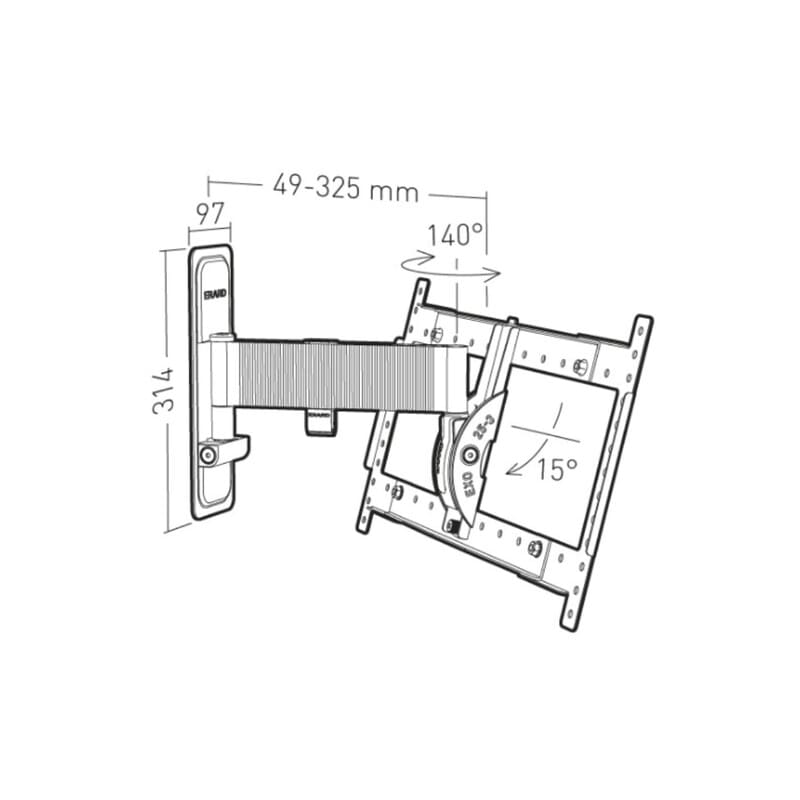 Kallistettava ja kääntyvä alumiiniseinäteline 315mm varrella. Suunniteltu erityisesti 30\"-85\" OLED-näytöille.