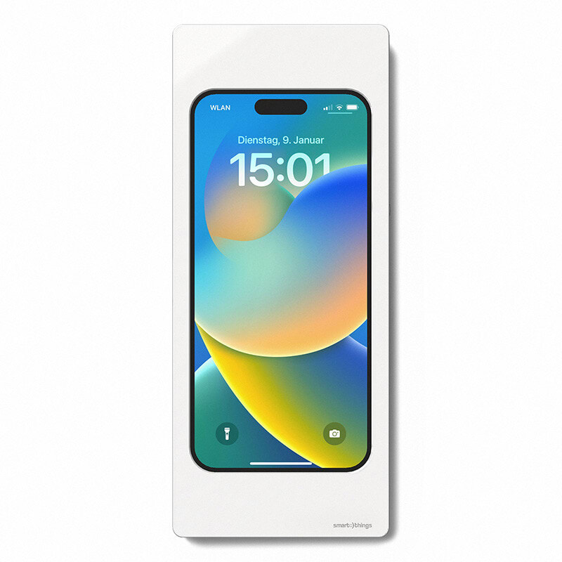 Lukittava seinäteline iPhone 16, 16e, 15/15 Pro, 14/14 Pro, 13/13 Pro, 12/12 Pro, valkoinen