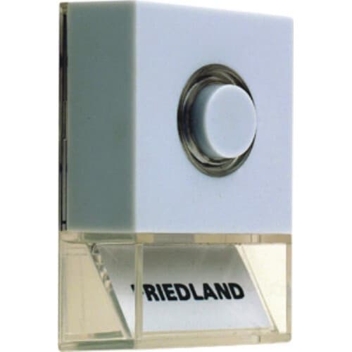 D723W painonappi (valkoinen) valaistulla napilla B1204N. Kotelointiluokka IP40 ja liitäntä ainoastaan piensuojajännitteeseen 1-24V. Suositus jännite 8VAC ovikellomuuntajalla max. 2A.