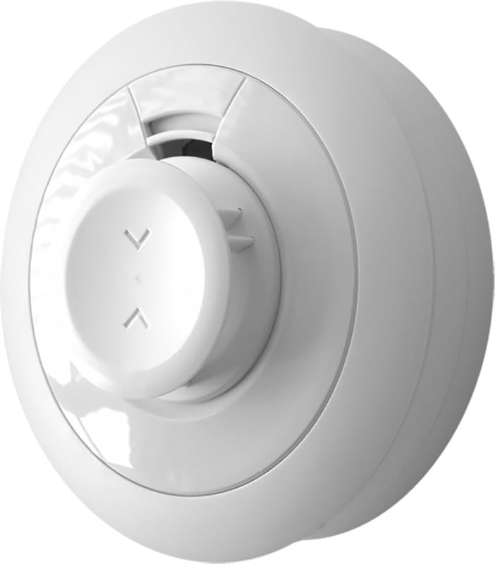 Lämpöilmaisin 10 vuoden akulla. Kun akku kestää koko ilmaisimen elinajan, täytyy ilmaisin irrottaa katosta vasta vaihdon yhteydessä.