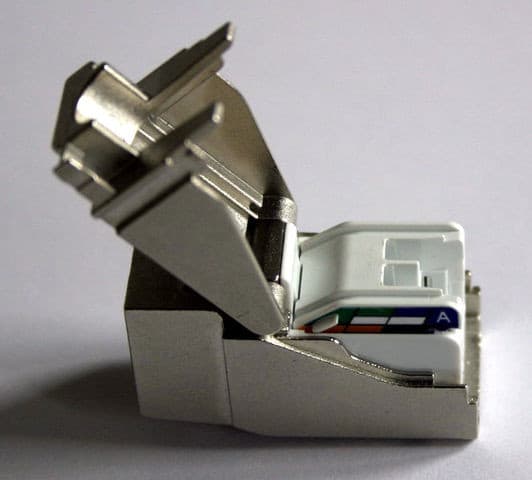 Kerman työkaluton Cat6A STP Keystone liitin.