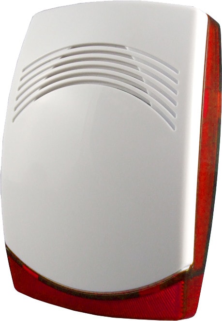 Sisäsireen vilkulla, 115 dB, 9 - 15 VDC, max. 100 mA, kansikytkin (NC).