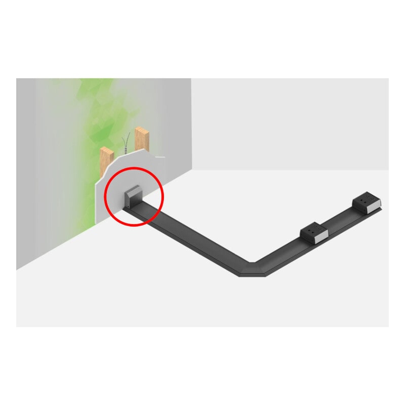 FSR Smart-Way järjestelmän seinäsyöttökotelo yhdelle tai kahdelle virtajohdolle sivuilla ja heikkovirtakaapeleiden läpivienti keskellä. Käytetään Smart-Way kaapelikanavan liittämiseen seinän vierellä.