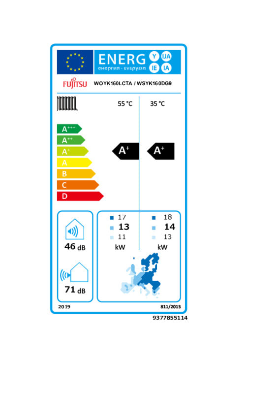 - Energialuokka keskialueen ilmastovyöhyke 35C/55C, A+/A+