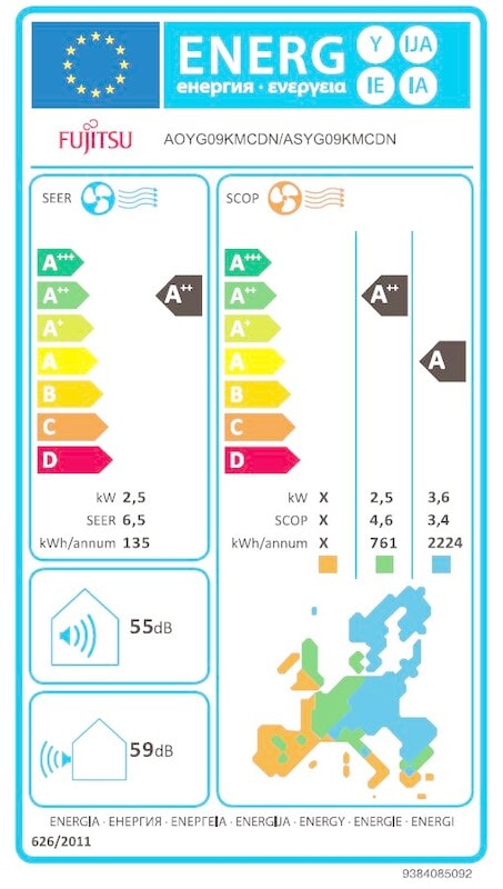 - SEER 7.5 ja EER 4.25
