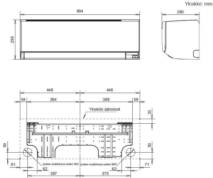 - Sisäyksikkö 295×894×280mm